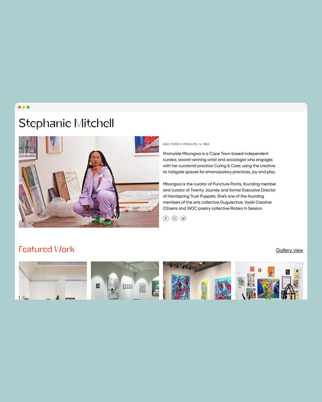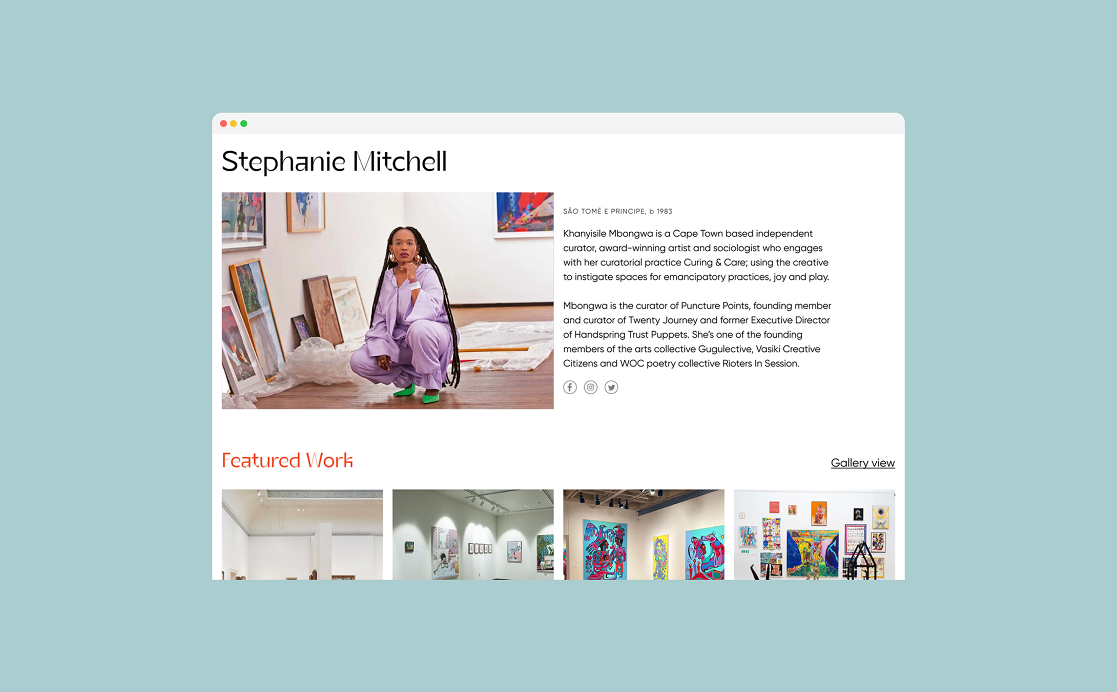A digital platform was developed to function as an exhibition space for these artists. It operates as a catalogue of artists and artworks, while also serving as a hub for news, interviews, and cultural programming.